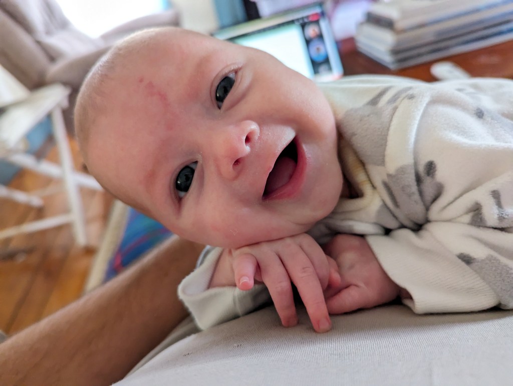 She surprises me every day. Every day, something is new and fascinating. She’s learning to hold up her head, making lots of new noises, and looking more and more like her daddy. She is beautiful and strong, and I’m the luckiest. I love being her mom. It’s the best thing I’ve ever done.